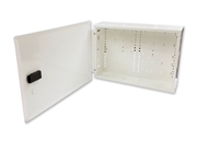 The 14326WH-UL is an exterior semi-recessed enclosure designed to house and protect "Fiber to the Home" and other low-voltage wiring equipment. The enclosure includes a 1/2" plywood backboard and 4-po...